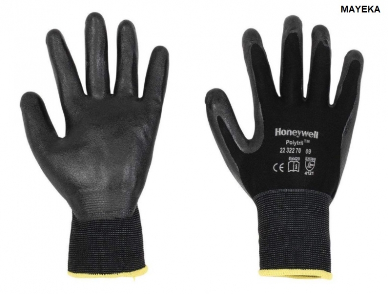 Siyah poliamid örgü, avuç içi ve parmak uçları siyah nitril köpük kaplama